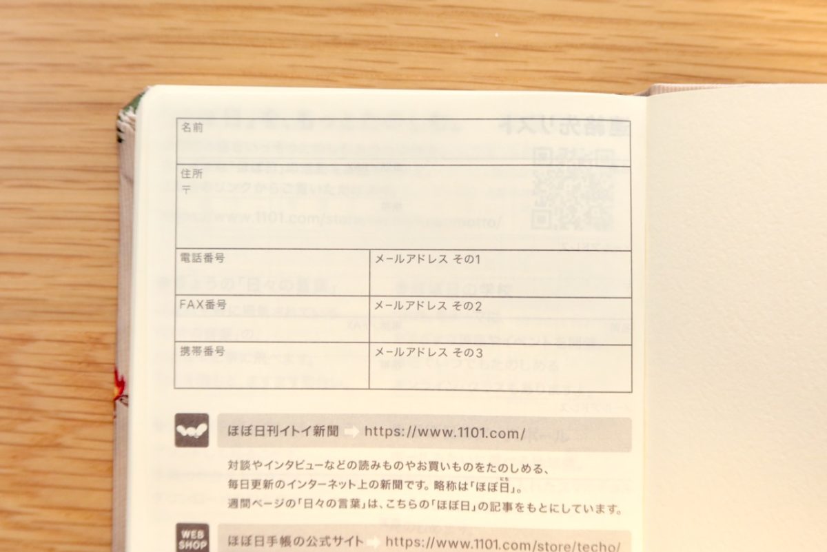 最後に、「え、それだけ?」って感じかと思いますが、万が一手帳をなくした時に手元に戻ってくる可能性を少しでも高めるために自分の連絡先は必ず書いてます。