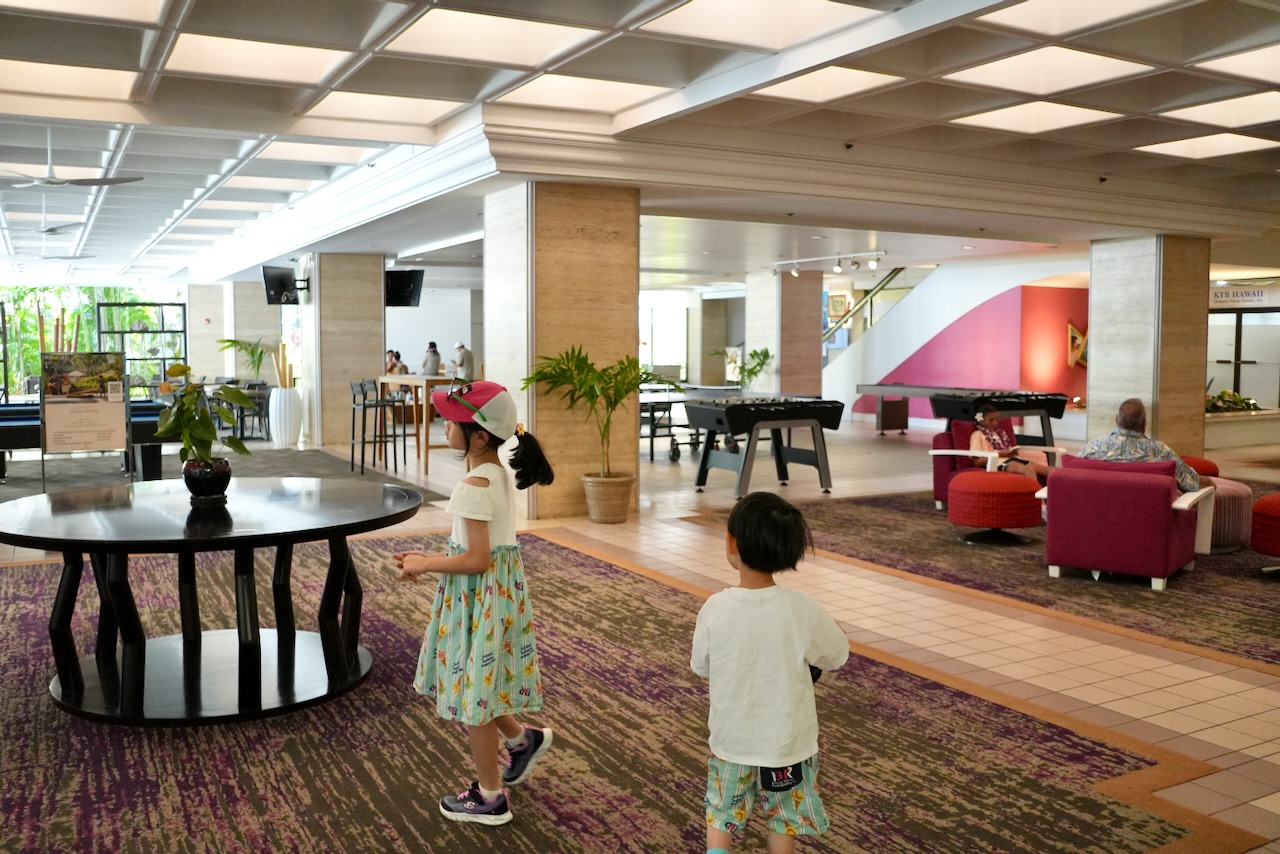 我が家はホテルの外で食事を済ませていたので、こちらのレストランは利用しませんでしたが、朝食からディナー、夜のカクテルタイムまで幅広く利用でき、夜にはハワイアンミュージックの生演奏が心地よく響いていました。