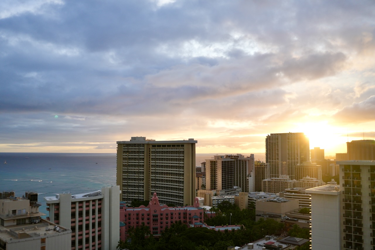 「パーシャルオーシャンビュー」とはいえ、ビルの合間からダイヤモンドヘッドと美しいワイキキの海をしっかり拝むことができました。夜にはワイキキの夜景も楽しめ、限られた予算の中でも「ハワイに来た!」という実感を十分に味わえる贅沢な空間です。