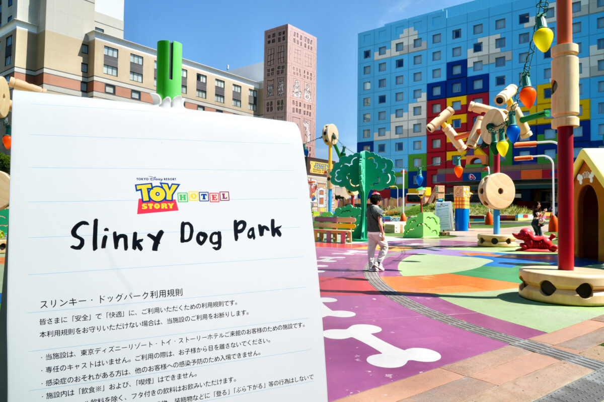 最後はトイストーリーのランドマーク的存在である中庭「スリンキー・ドッグパーク」です。