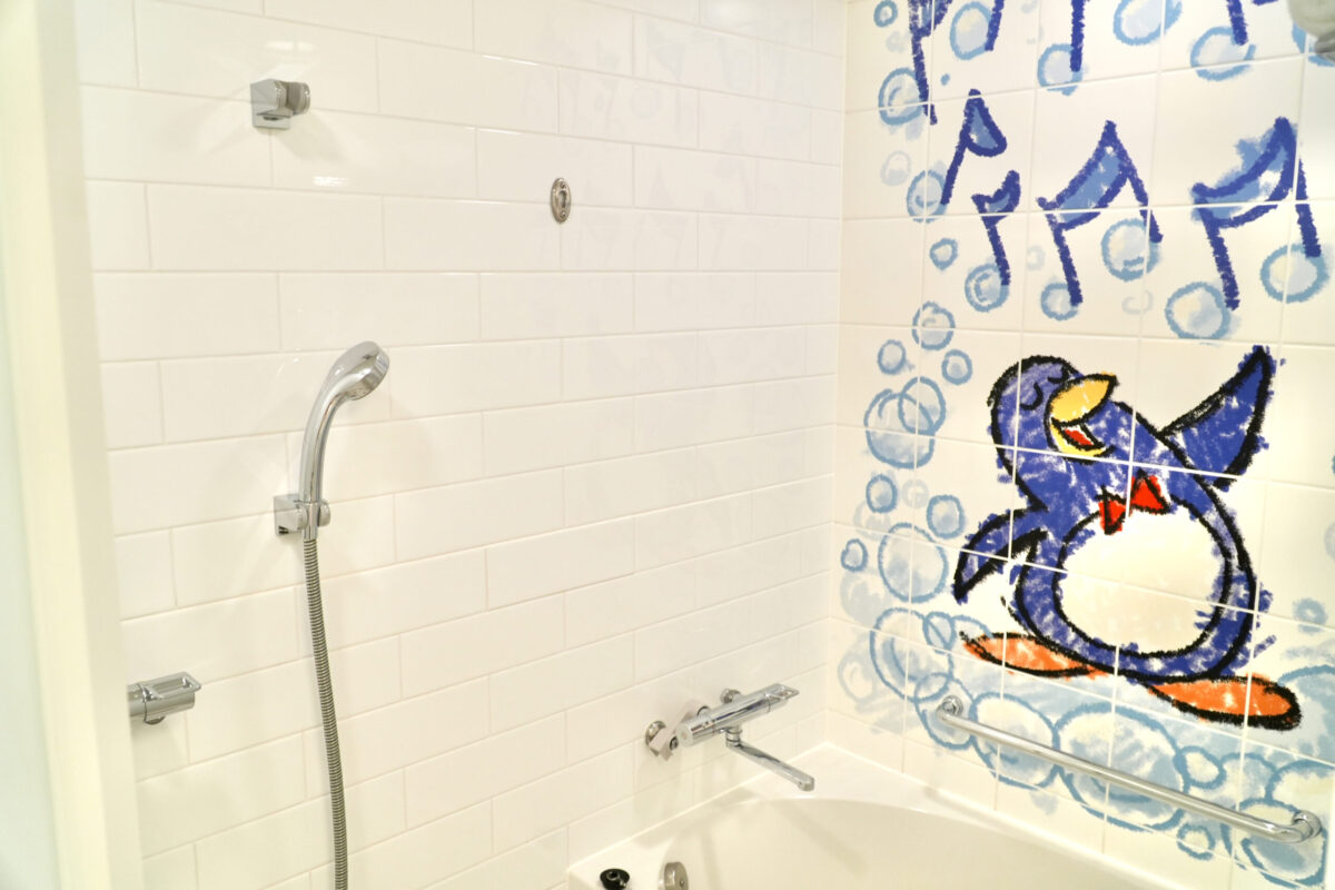 お風呂の壁ではウィージーが気持ちよさそうに歌っていました♪