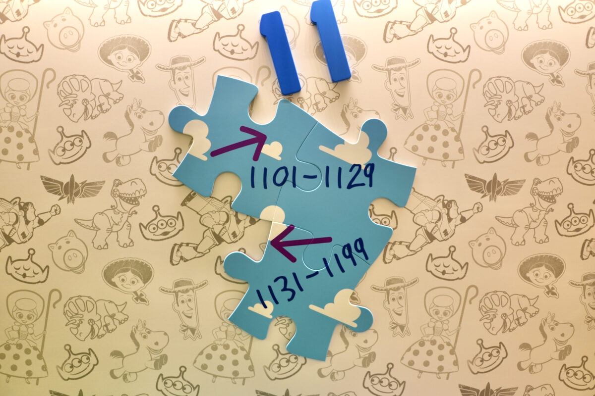 客室の案内板がパズルのピースになっていてめっちゃかわいいです。