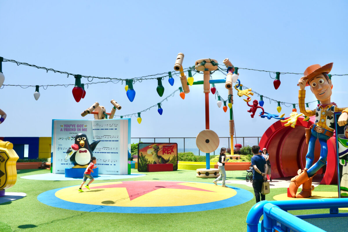 全てのキャラクターが巨大サイズで、おもちゃになったような気分にさせてくれる空間です。